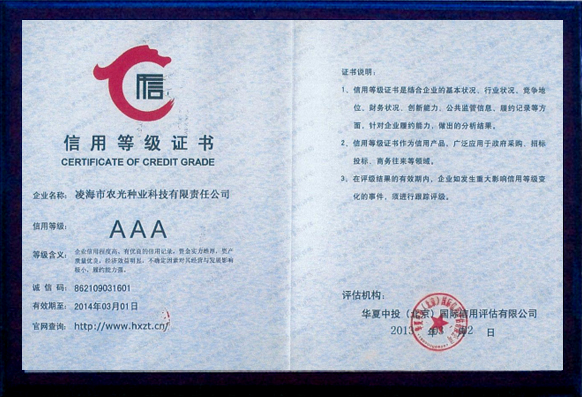 | 凌海市農(nóng)光種業(yè)科技有限責(zé)任公司是由遼寧省種子管理局和凌海市人民政府批準(zhǔn),集科研、生產(chǎn)、試驗(yàn)示范、經(jīng)營為一體的種子企業(yè)。 公司擁有種子繁育基地3萬畝,年產(chǎn)種子1200萬公斤左右。自成立以來在農(nóng)業(yè)部及遼寧省歷次花期檢驗(yàn)中,所生產(chǎn)的種子質(zhì)量合格,擁有良好的儲備、晾曬和機(jī)械加工設(shè)備,為了提高種子質(zhì)量,2015年新購置種子脫粒機(jī)、清選機(jī)、烘干機(jī)以及電腦包裝機(jī)等整套加工設(shè)備,擁有經(jīng)省技術(shù)監(jiān)督局認(rèn)證的“標(biāo)準(zhǔn)化檢驗(yàn)室”,投資20萬元購買人工氣候室、土壤測試儀、低溫低濕冷藏箱等各種檢驗(yàn)設(shè)備。公司重視種子科研工作,現(xiàn)有科研育種實(shí)驗(yàn)基地100畝,科研上以自主研發(fā)為主,同時與多家科研單位合作育種,每年繁、育、測交材料2000多份,現(xiàn)以推出五個組合參加錦州區(qū)域試種,其中“農(nóng)光3號、農(nóng)光4號”在錦州地區(qū)試驗(yàn)中產(chǎn)量居首位。2006年公司買斷的連玉16玉米品種已通過5個省市的審認(rèn)定,具有適應(yīng)性廣、抗逆性強(qiáng)、產(chǎn)量高的特點(diǎn),曾榮獲大連科技進(jìn)步一等獎,深受廣大農(nóng)戶的歡迎。2008年公司新選育的農(nóng)光4000玉米品種在市種子管理站新品種大區(qū)試驗(yàn)項(xiàng)目中。2012年公司買斷錦玉118品種權(quán),新品種的推廣與應(yīng)用為公司的發(fā)展提供了充足的動力...... |